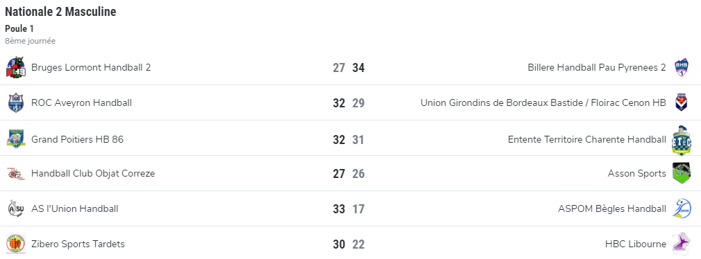 Bruges Lormont² 27 – 34 Billère²